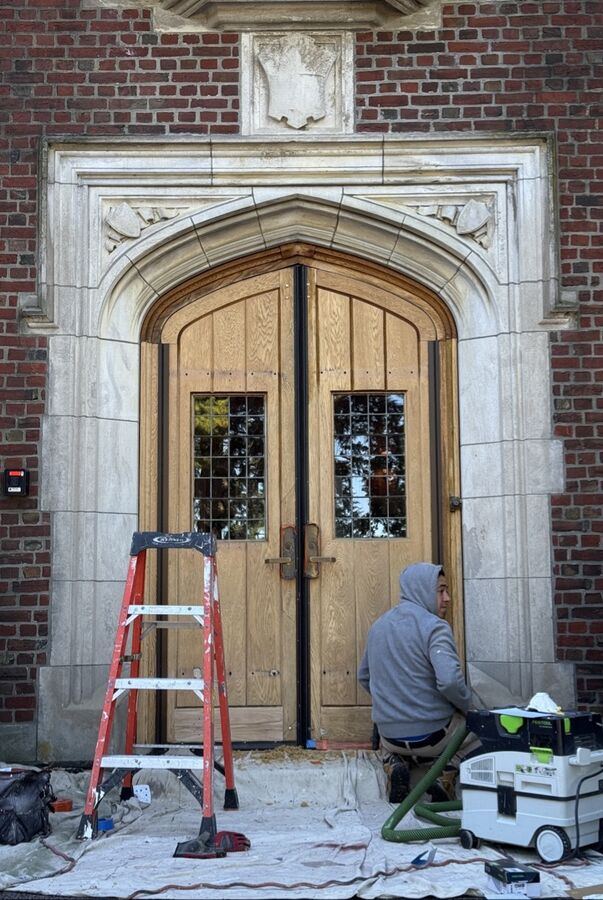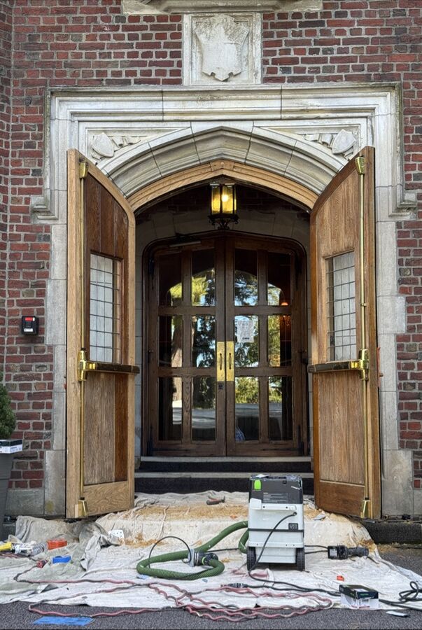 Three sets of heavily used and highly visible exterior doors were selected for restoration: