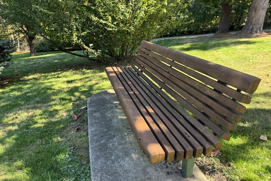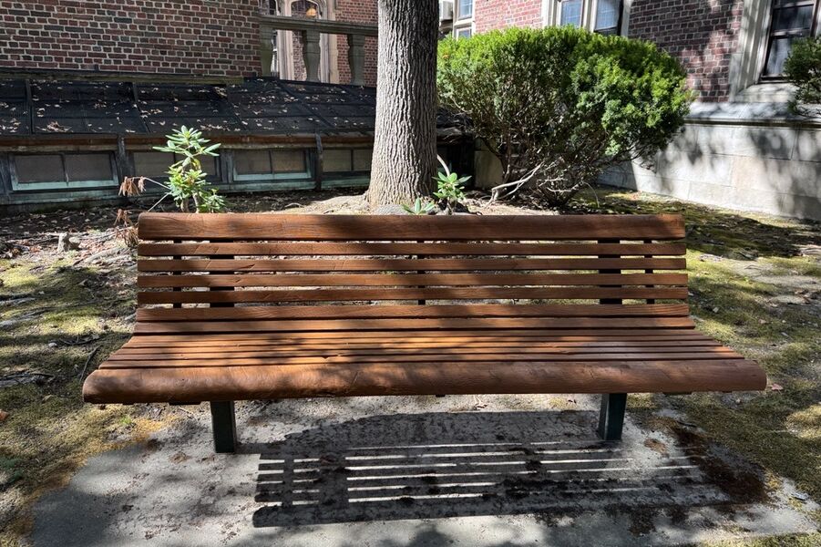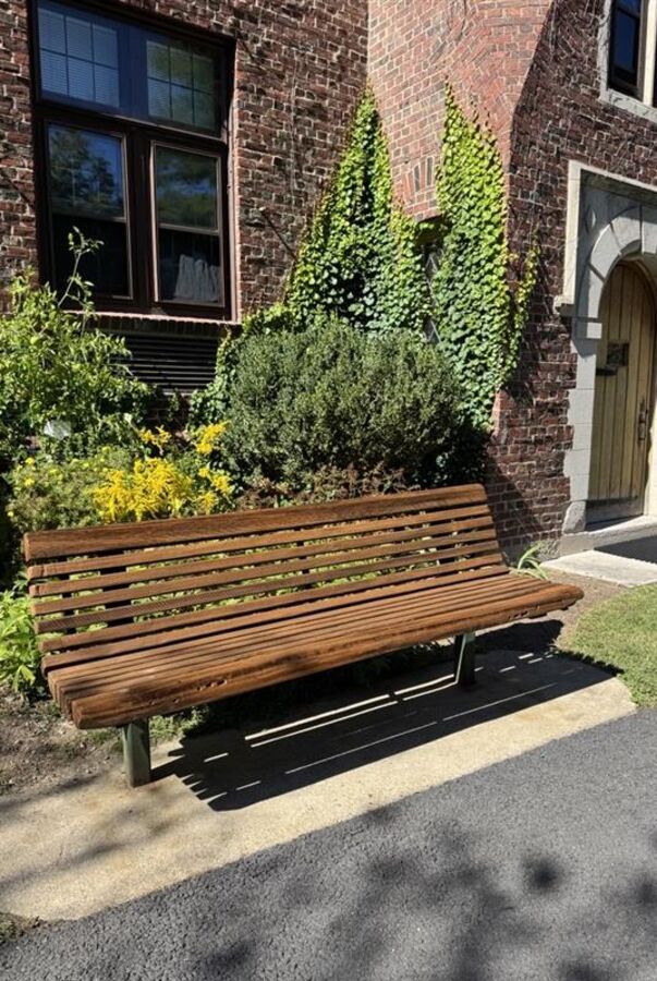 Refinishing ten benches was no small task. The process required sanding, scraping, brightening, sealing—and, above all, patience. Each bench took about eight days to complete, with careful attention to weather and drying time between each coat.